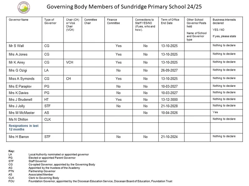 The Governing Body of Sundridge Primary School meets as a Full Governing Body and committees to deliver the three core strategic functions of school governors:-