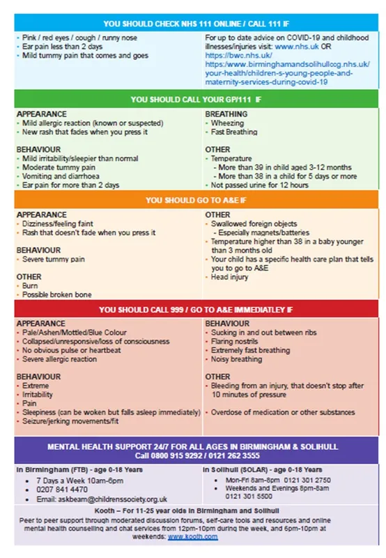 1. Urgent mental health help line: ring 0121 262 3555 for advice and support. This line is available 24 hours, 7 days a week and can be used whether you are known to the service or not.