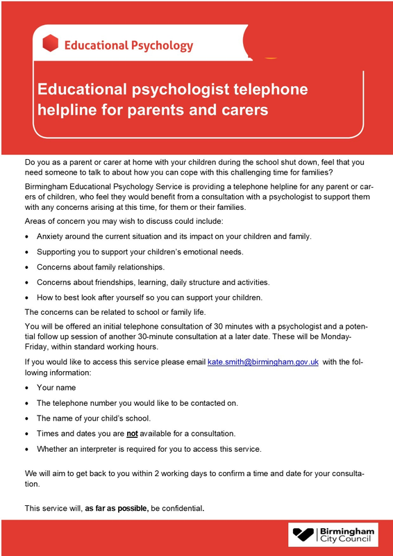 1. Finally, a reminder that there is a lot of other early help in the city for all young people and families. Click here for see a whole range of offers: Birmingham Children’s Partnership - Resources | Birmingham Children’s Partnership - Resources | Birmingham City Council