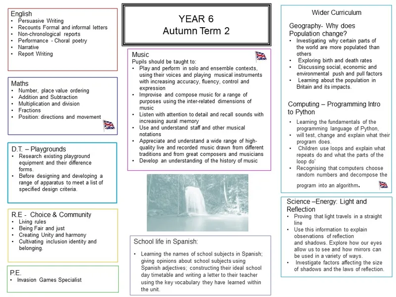 Homework : The recommended time for homework for Year 6 is 2.5 hours per week. Homework is set each half term, with weekly activities for Maths and English, as well as half termly activities for other subjects. Please support your child with their home learning.